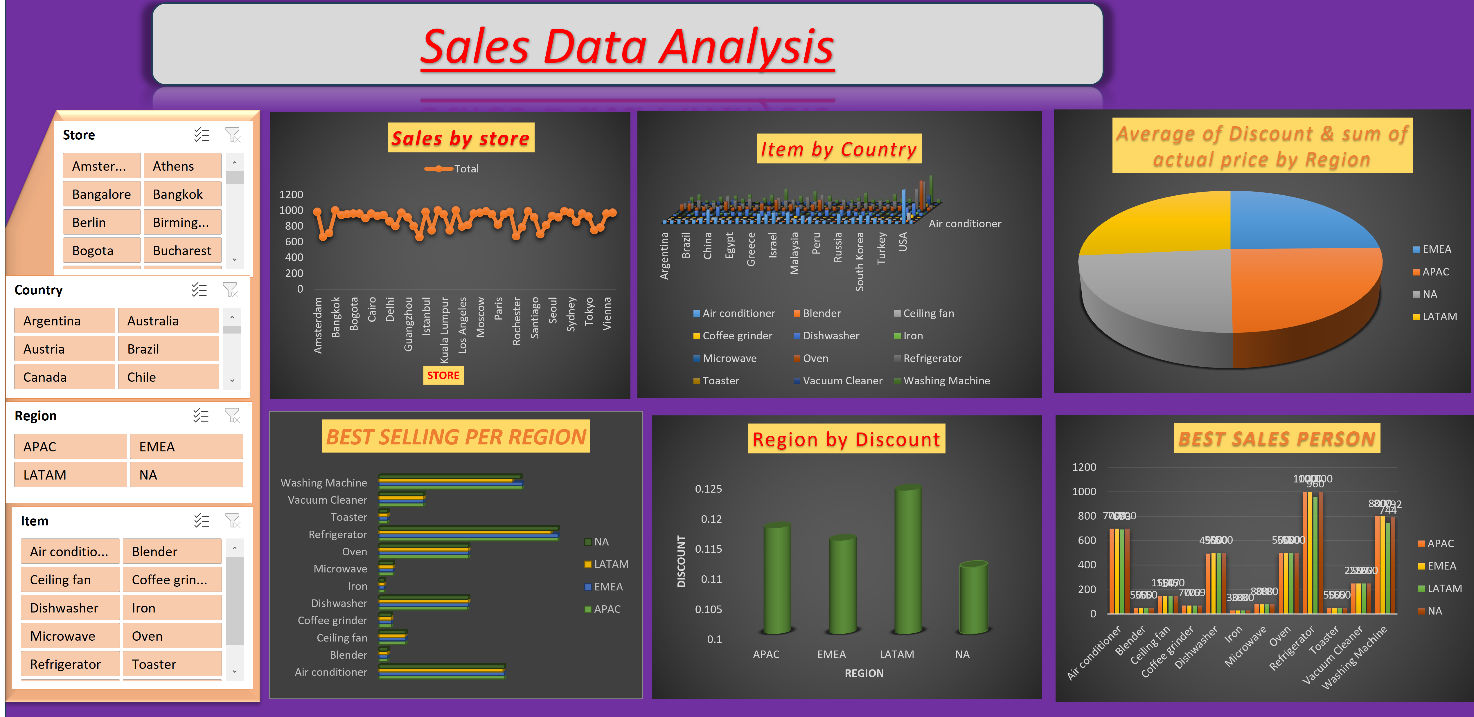 The sales data analysis dashboard in Excel, utilizing Pivot Charts, provides a detailed and dynamic view of sales performance. It enables users to slice and dice data to uncover trends, patterns, and insights essential for making informed business decisions..