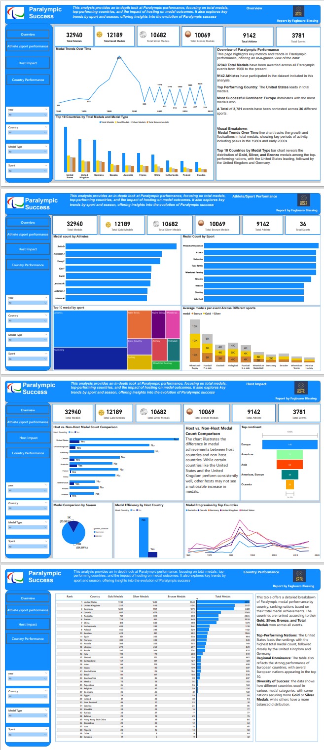 This analysis provides an in-depth look at Paralympic performance, focusing on total medals, top-performing countries, and the impact of hosting on medal outcomes. It also explores key trends by sport and season, offering insights into the evolution of Paralympic success.