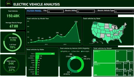 The EV analysis dashboard provides a detailed view of various aspects of electric vehicles, including market trends, sales performance, charging infrastructure, and environmental impact. It leverages data visualization to offer insights that can inform business strategy, policy-making, and consumer behavior.